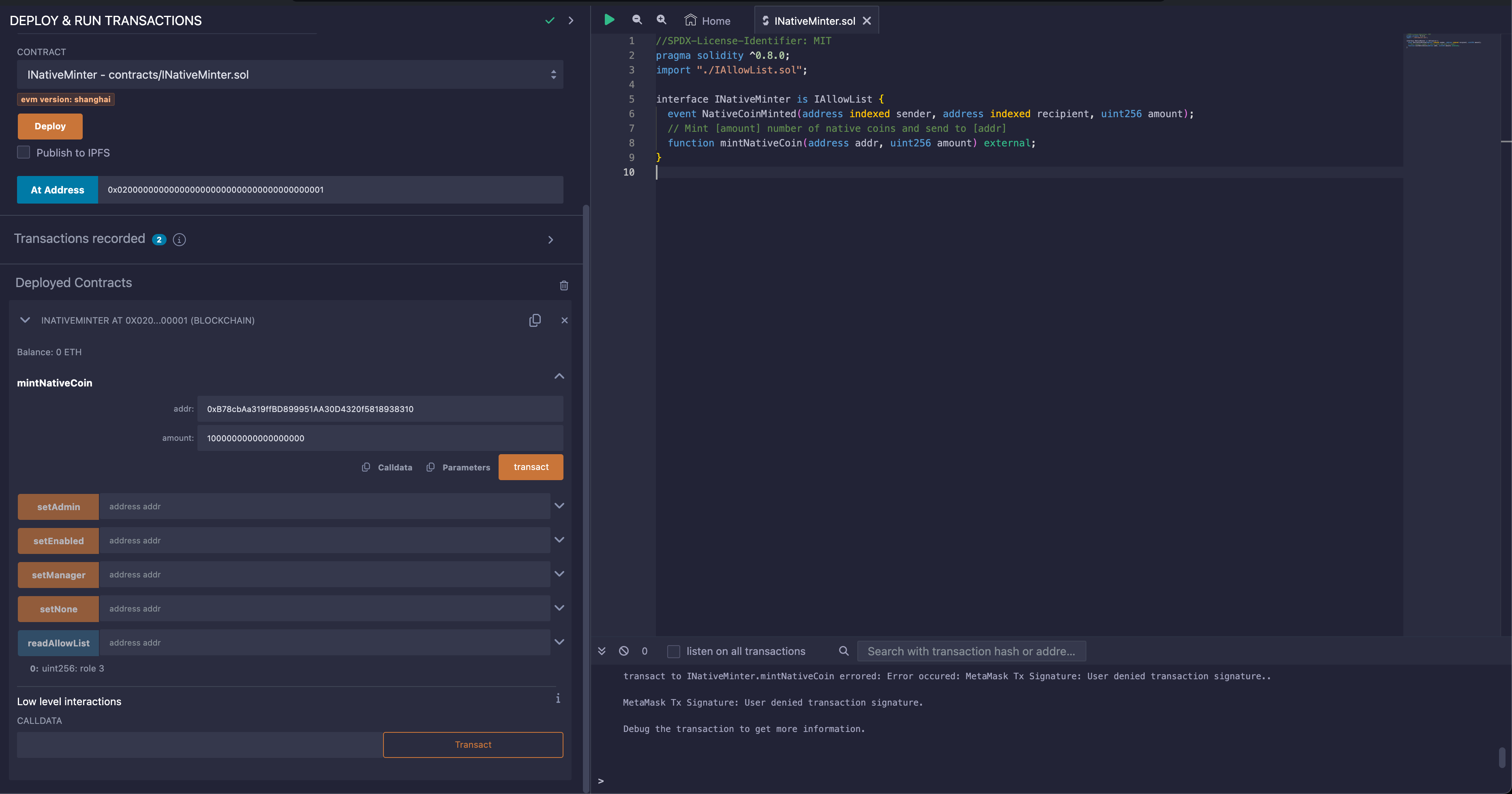 Using NativeMinter